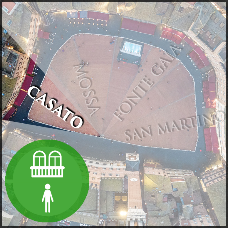 Food, Drinks & Restrooms: Some balcony locations may include light refreshments such as soft drinks, water, juices, or small snacks, depending on the specific property. Please note that alcoholic beverages are neither served nor permitted to be brought onto the balconies. Much like in a modern stadium, if you wish to enjoy a wider selection of food or a glass of wine, you can simply step out from the balcony and visit one of the many cafés and bars located just outside Piazza del Campo. Restroom facilities are always accessible—either directly within the adjoining space or conveniently located just outside.